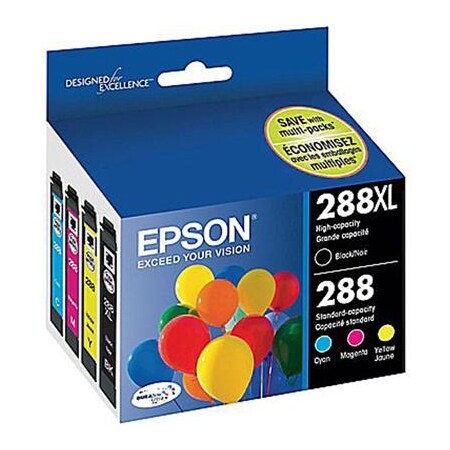 Epson T288XL-BCS (288XL) DURABrite Ultra High-Yield Ink, 500/450 Page-Yield, Black/Cyan/Magenta/Yellow