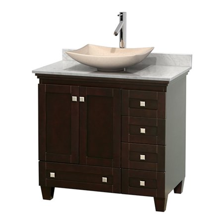 WDX1513 <br /> <strong>Features</strong> <br /> <li>Acclaim collection</li> <li>Material: Environmentally friendly and zero emissions solid oak hardwood</li> <li>Hardware Finish: Brushed chrome</li> <li>12 Stage wood preparation, sanding, painting and hand-finishing process</li> <li>Highly water-resistant low V.O.C. sealed finish</li> <li>Cutting edge, unique styling by interior designer Christopher Grubb</li> <li>Style: Contemporary</li> <li>Base Material: Wood</li> <li>Top Material: Stone</li> <li>Hand Painted: Yes</li> <li>Mounting: Free-standing</li> <li>Doors Included: Yes</li> <li>Drawers Included: Yes</li> <li>Sink Included: Yes</li> <li>Mirror Included: Yes</li> <li>Backsplash Included: Yes</li> <li>Eco-Friendly: Yes</li> <li>Number of Doors: 2</li> <li>Number of Drawers: 5</li> <li>Sink Type: Vessel</li> <li>Number of Sinks: 1</li> <br /> <strong>Dimensions</strong> <br /> <li>Backsplash height: 3''</li> <li>Overall Height - Top to Bottom: 34''</li> <li>Overall Width - Side to Side: 36''</li> <li>Overall Depth - Front to Back: 22''</li> <li>Base Width - Side to Side: 36''</li> <li>Overall Product Weight: 284 lbs</li>