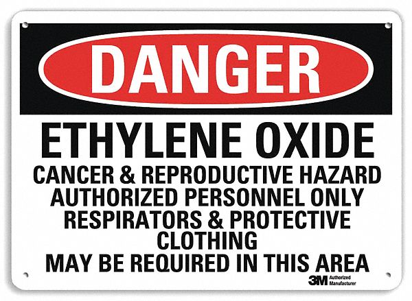 Danger Sign, Vertical Rectangle, Number of Printed Sides 1, English, Sign Format Traditional OSHA, Sign Legend Ethylene Oxide Cancer Hazard And Reproductive Hazard Authorized Personnel Only Respirators And Protective Clothing May Be Required To Be Worn In This Area, Sign Legend Background Color White, Sign Legend Style Text