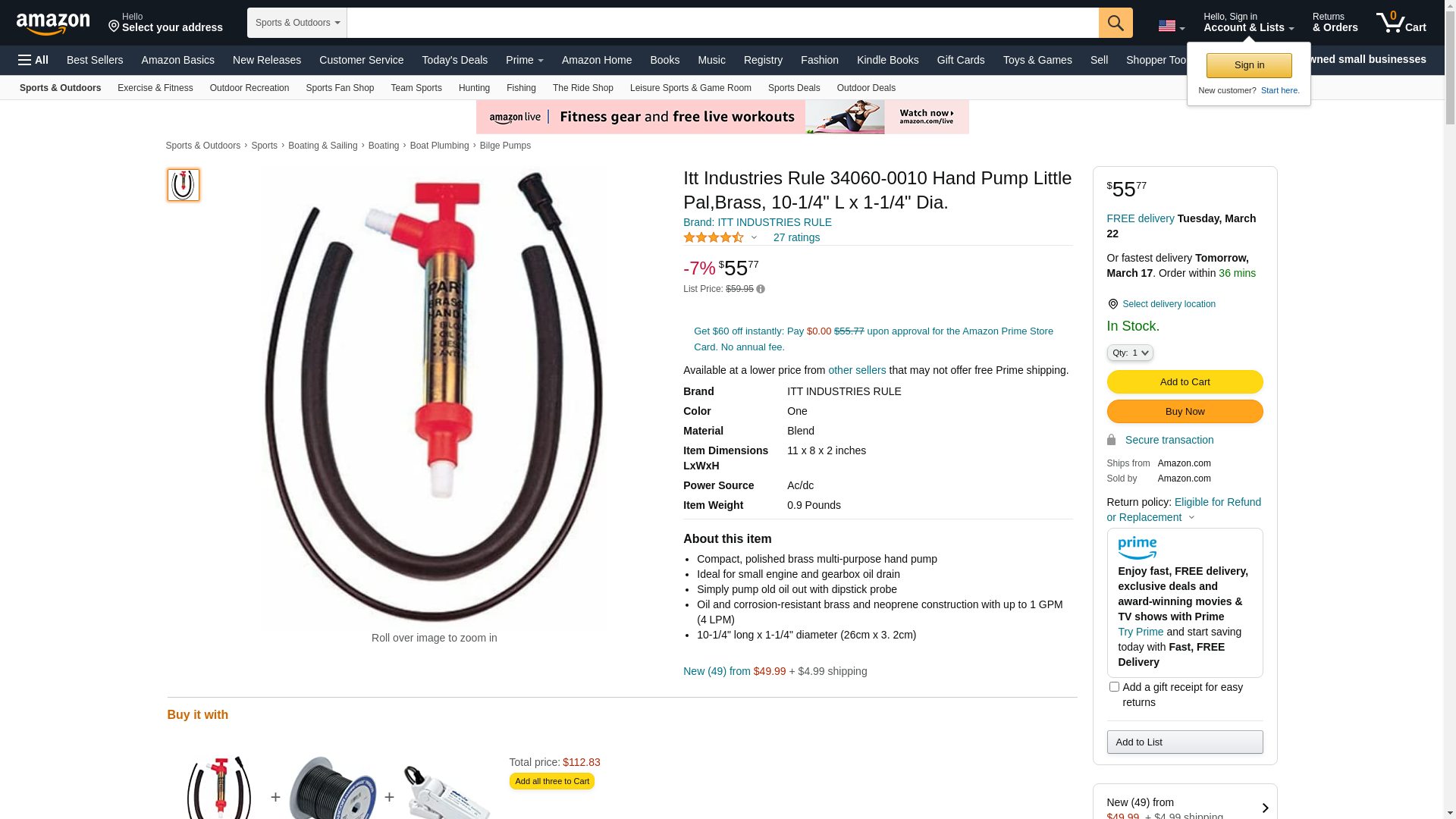 Itt Industries Rule Hand Pump Little Pal,Brass