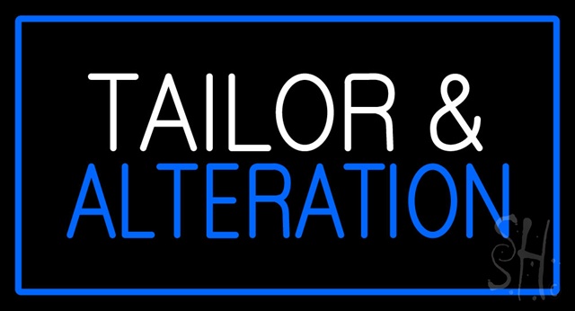 Sign Store N100-2781 White Tailor And Alteration With Blue Border Neon Sign, 37 x 20 x 3 In.