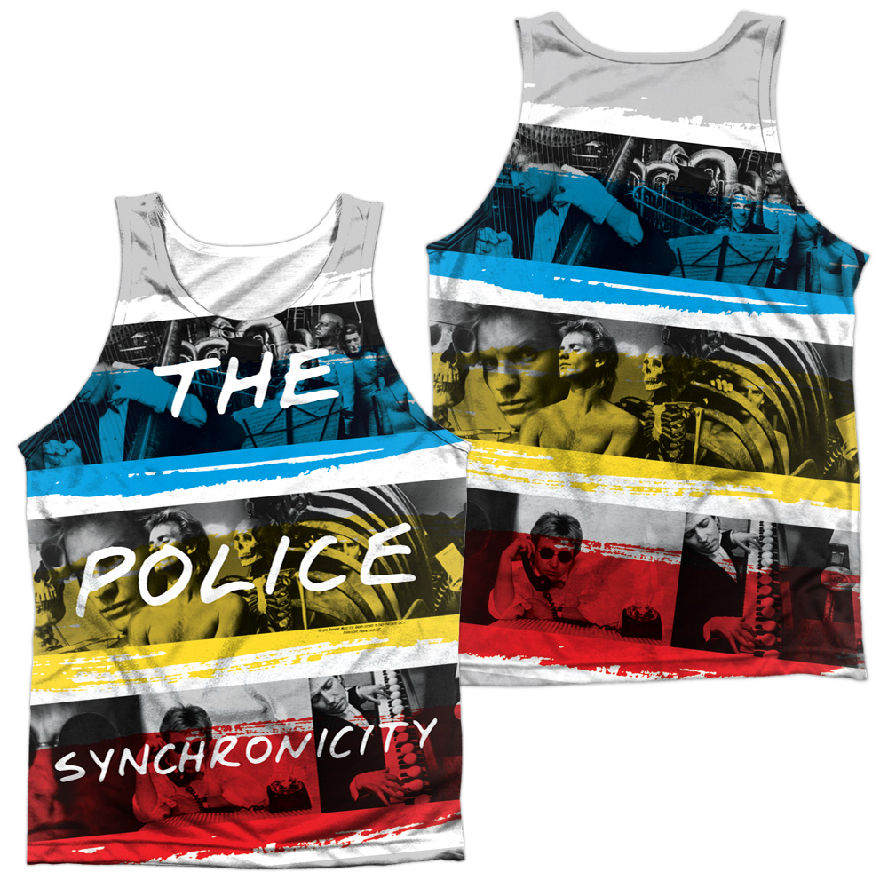Trevco PERRY148FB-TKPP-1 The Police & Synchronicity Front & Back Print Adult Polyster Tank Top, White - Small