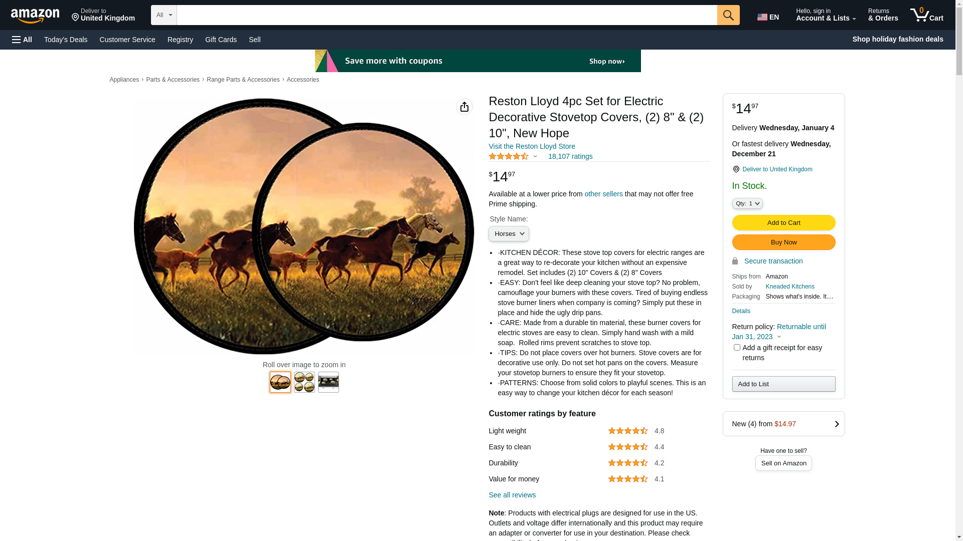 | Feature | Burner cover set designed for electric stovetops features an all-over pattern A Brand New Hope horse theme |