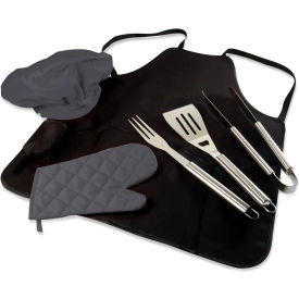 Picnic Time 635-88-179-000-0 BBQ Apron Tote Pro - Black With Dark Grey Accessories