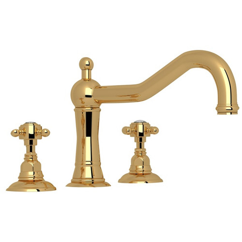Rohl A1414XCIB Rohl Italian Bath Acqui Three Hole Deck Mounted Tub Filler In Italian Brass With Crystal Cross Handles And Column Spout