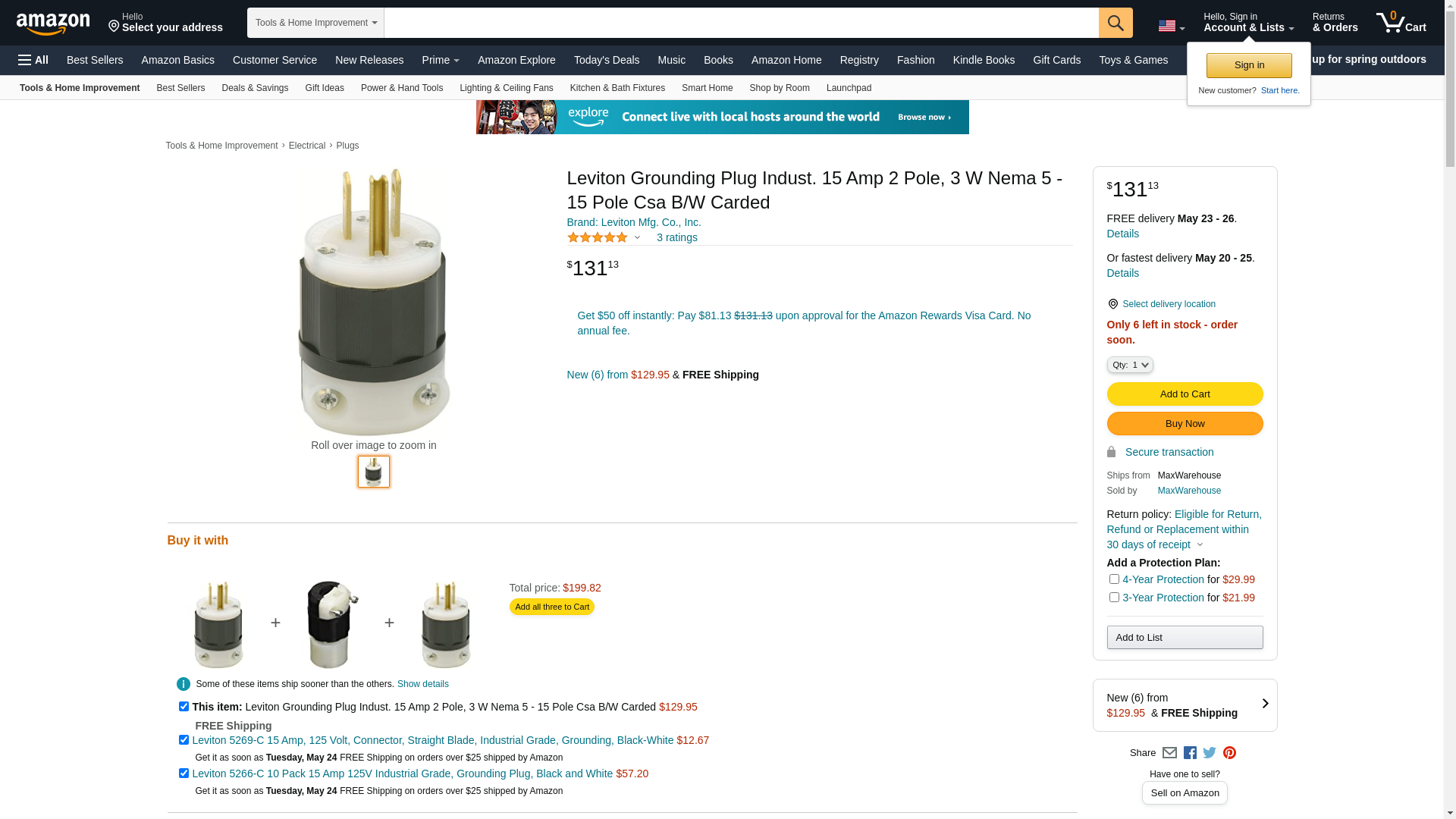 Sold as 3 UNITS at $10.91 per unit. (1 unit = each.) 15 amp. 125V. NEMA 5-15P. 2P 3W. Straight blade. Industrial grade. Grounding. Black/white. Carded. Manufacturer number: 161-05266-00C. SKU #: 3215217. Country of origin: (TBA). Distributed by Leviton Mfg. Co.,, Inc.