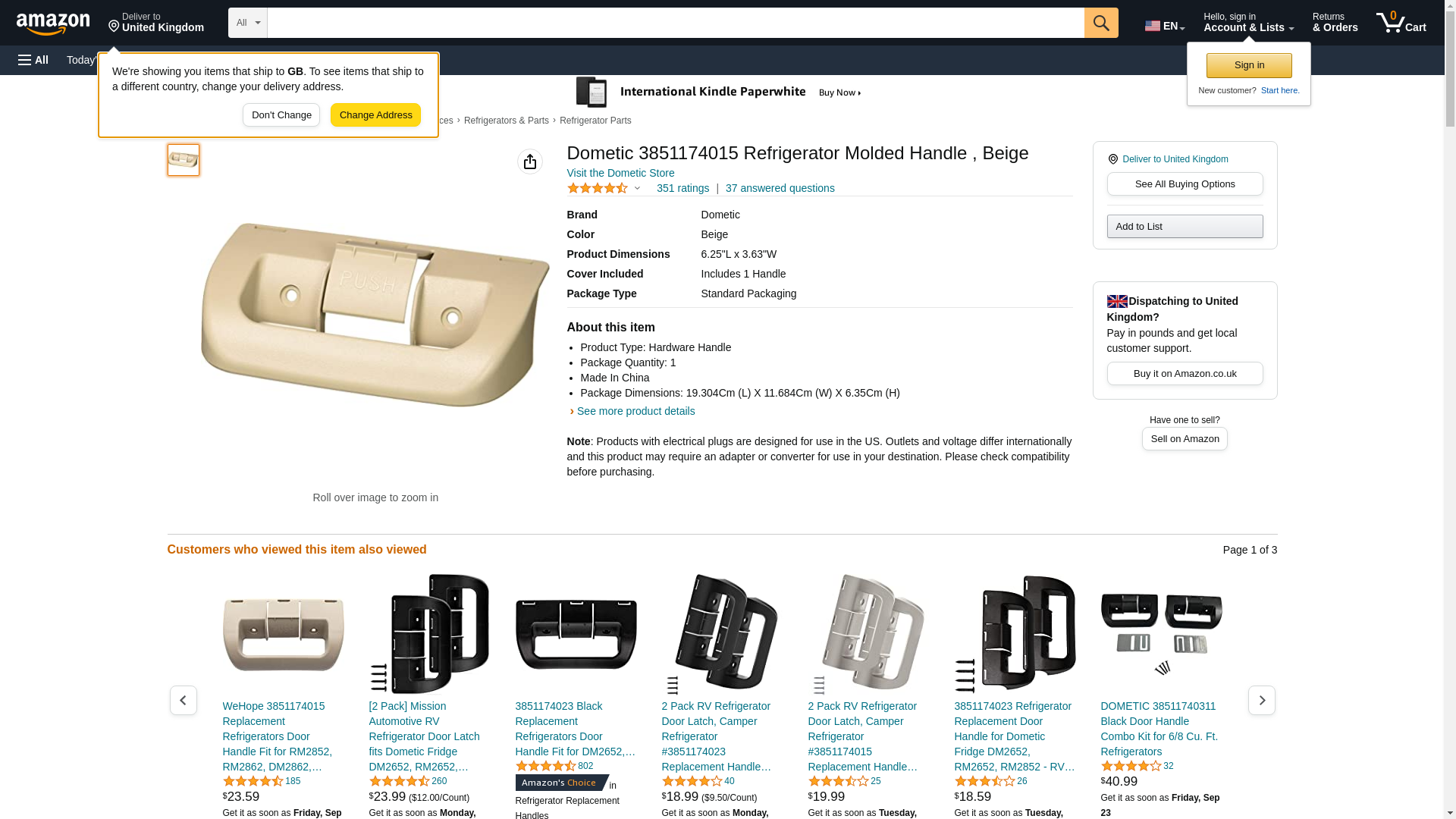 Dometic 3851174015 Refrigerator Molded Handle , Beige