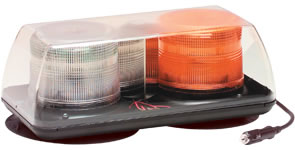 ECCO (5350CCR-VM) Strobe Minibar: 15", 12-48 VDC, clear dome, 1 clear & 1 red lens, vacuum-magnet mount