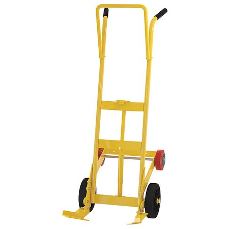 Designed for moving 55 gallon steel or plastic drums. Features a spring mechanism, which allows for easier tilting of fully-loaded drums. Four-wheel design for easier drum transportation when tilted. Top loop handle allows for easier control when moving. Drum is secured to truck with an adjustable height drum hook bar. Removable drum hook bar includes built-in bung nut wrenches. Capacity is 1,000 pounds. Steel construction with powder coat finish. Limited Warranty: 30 days. Uniform Capacity (pounds): 1,000, Acceptable Drum Type: 55 Gallon Plastic, Main Wheel Quantity/Diameter/Width (in.): (2) 10 x 2-1/2, Main Wheel Material: Molded Rubber, Stabilizer Caster Quantity/Diameter/Width (in.): (2) 6 x 2, Stabilizer Caster Material/Type: Molded Rubber/Rigid