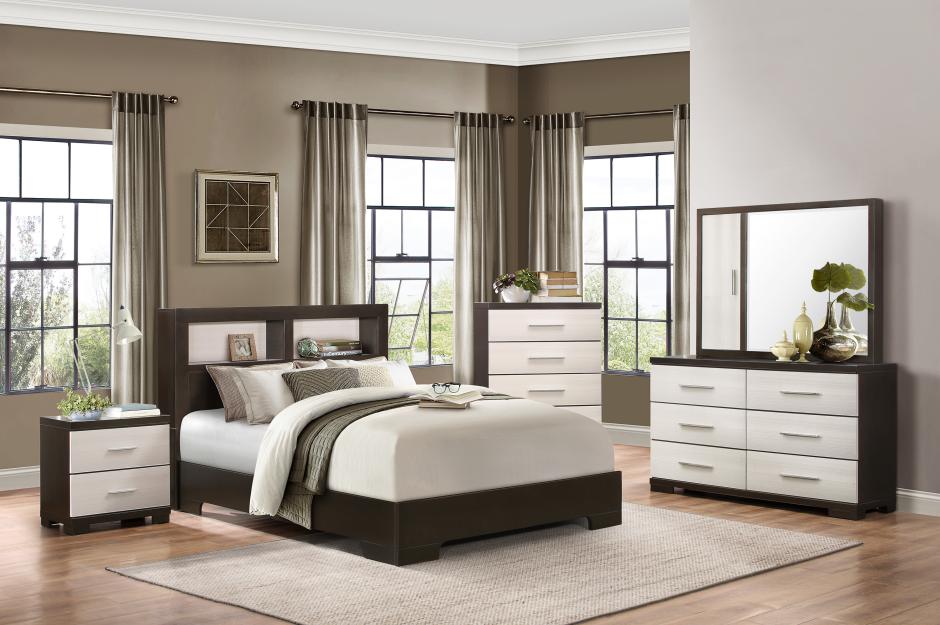 Home Elegance 1967KW-1EK 47 x 12 in. Eastern King Size Pell Bed with Bookcase Headboard - Espresso & White