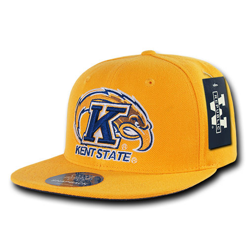 Features. Freshman Fitted College Cap is a 6-panel. Material - 100 Acrylic. High Definition 3D-Embroidery. Represent Your School. Retro Flat Bill. Fitted Cap. Officially Licensed Imported. Logo - Kent State. Color - Gold. Size - 7.25. Item Weight - 0.35 lbs.