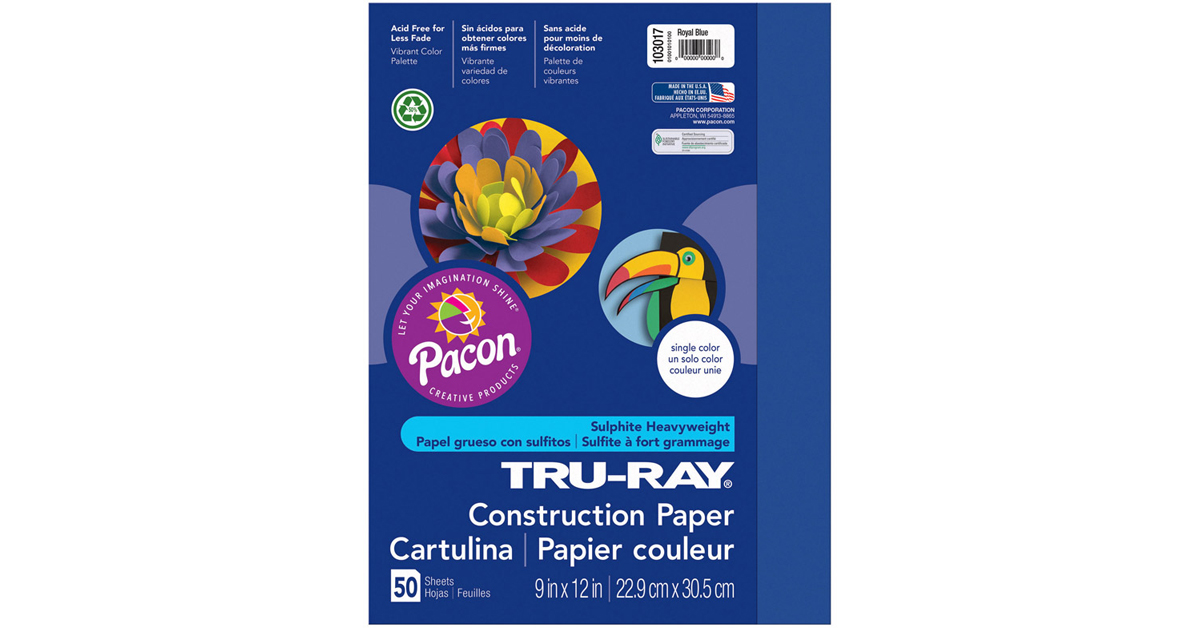 PP103017, CONST TRURAY 9X12 ROY BLU 50SH. Manufactured by Pacon. Tru-Ray Fade Resistant Construction Paper offers heavy-weight, acid-free construction; it withstands scoring, folding and curling without cracking or tearing. The superior fade-resistance keeps projects brighter, fresher longer.