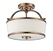 - This Semi-Flush is finished in Heirloom Brass