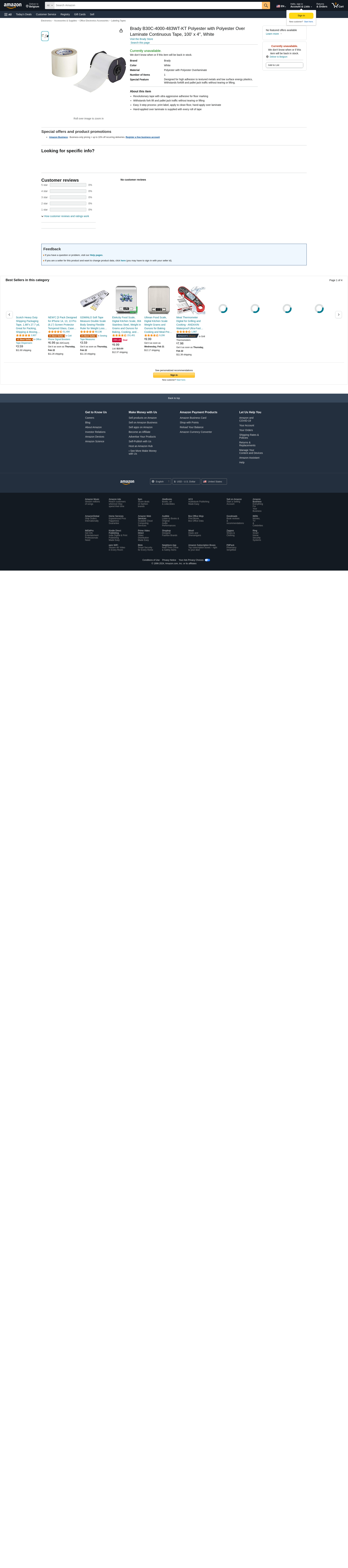 Brady B30C-4000-483WT-KT Polyester with Polyester Over Laminate Continuous Tape, 100' x 4", White