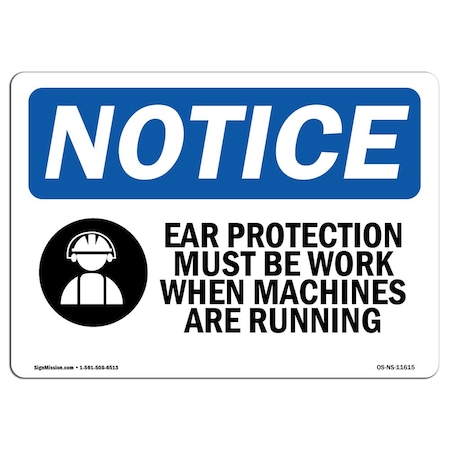 OSHA Notice Sign, Ear Protection Must Be Worn With Symbol, 7in X 5in Decal