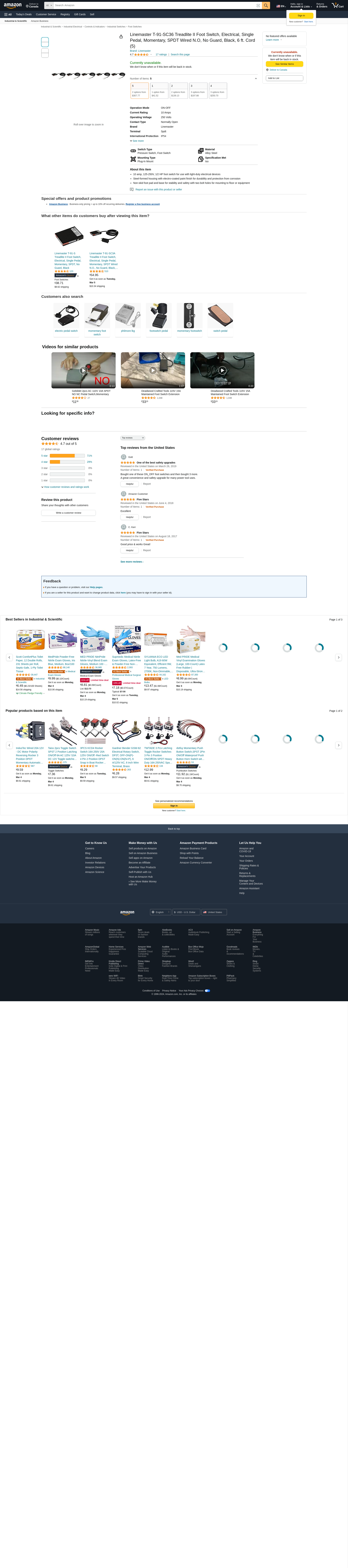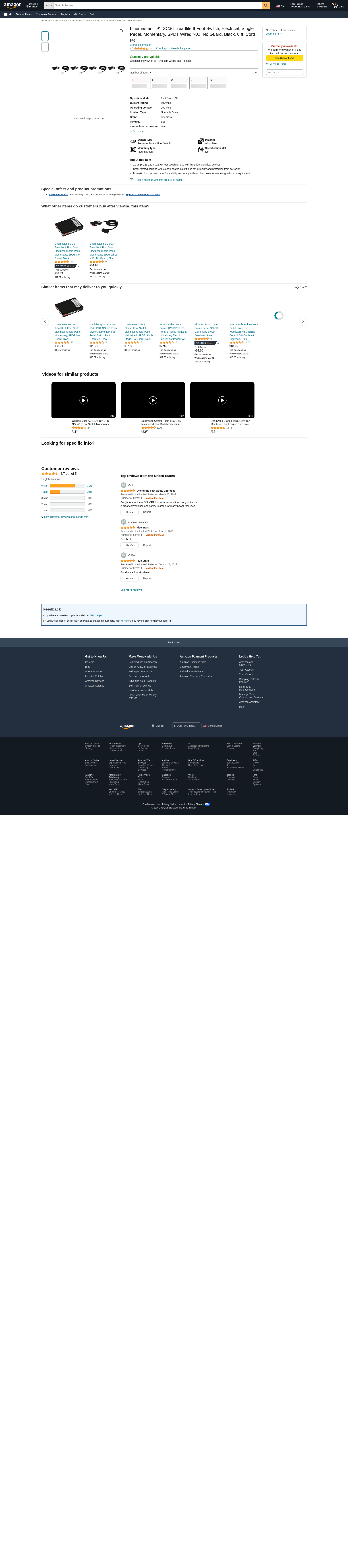 Linemaster T-91-SC36 Treadlite II Foot Switch, Electrical, Single Pedal, Momentary, SPDT Wired N.O, No Guard, Black, 6 ft. Cord (4)