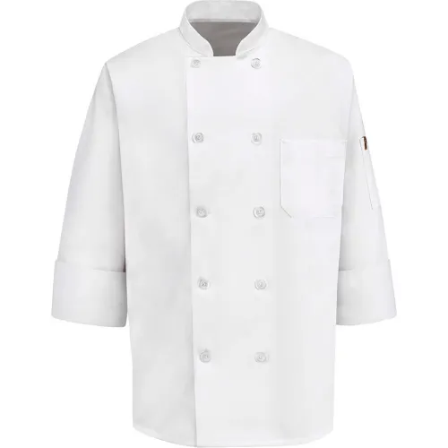 Chef Designs Men's 10 Button-Front Chef Coat, Pearl Buttons, White, Polyester/Cotton, S