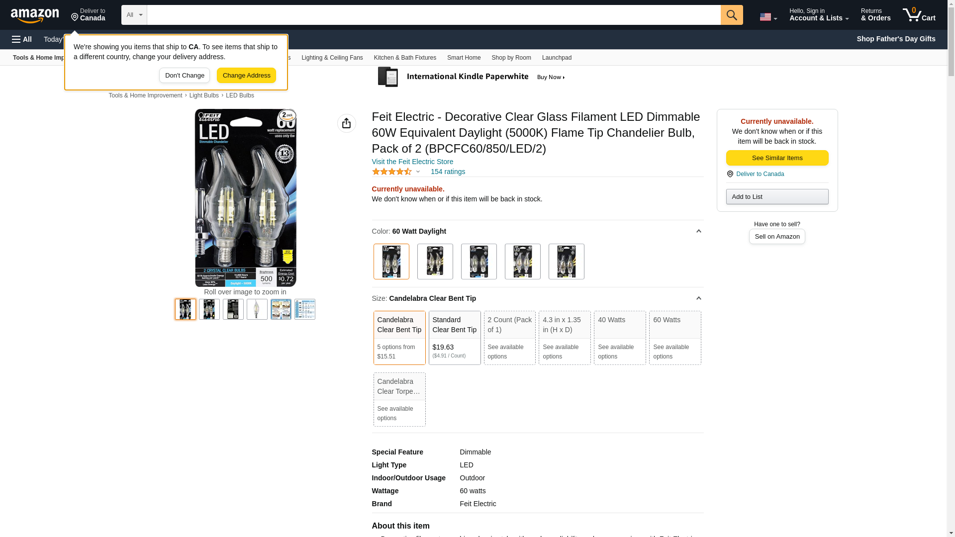 Feit Electric - Decorative Clear Glass Filament LED Dimmable 60W Equivalent Daylight (5000K) Flame Tip Chandelier Bulb, Pack of 2 (BPCFC60/850/LED/2)
