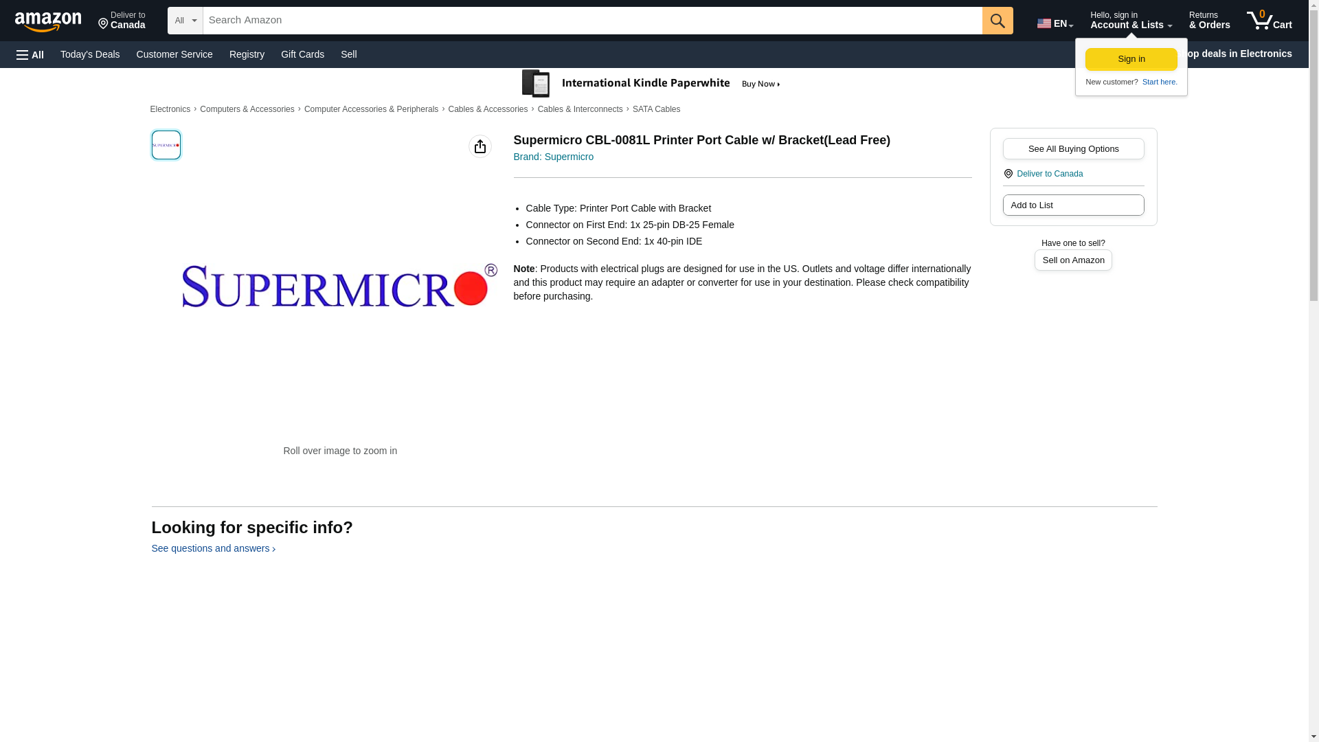 | Feature | Cable Type: Printer Port Cable with Bracket |