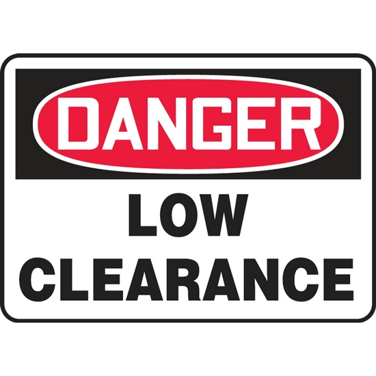 Contractor Preferred OSHA Danger Safety Sign: Low Clearance 7" x 10" Adhesive Vinyl (3.5 mil) 1/Each - EECR001CS - Jendco Safety Supply