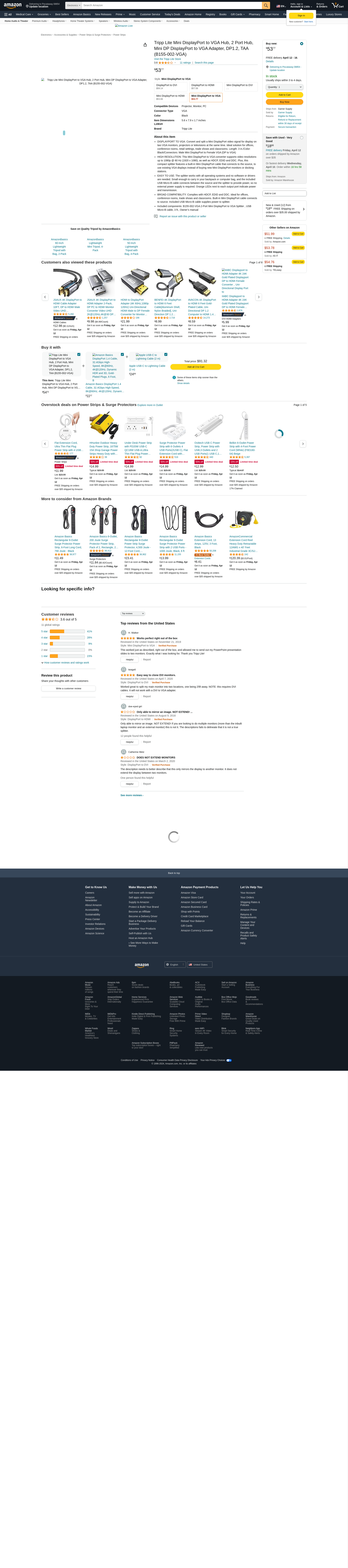 Tripp Lite Mini DisplayPort to VGA Hub, 2 Port Hub, Mini DP DisplayPort to VGA Adapter, DP1.2, TAA (B155-002-VGA)