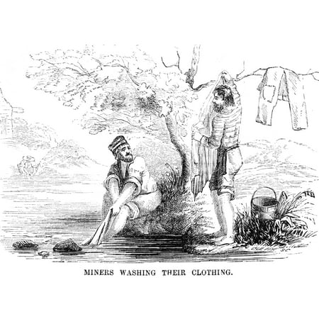 Gold Mining Camp 1853 Ngold Miners Washing Their Clothes In A River Wood Engraving American 1853 Poster Print by Granger Collection