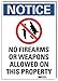 Notice Sign, Horizontal Rectangle, Number of Printed Sides 1, English, Sign Legend No Firearms Or Weapons Allowed On This Property, Sign Legend Background Color White, Sign Legend Style Symbol and Text