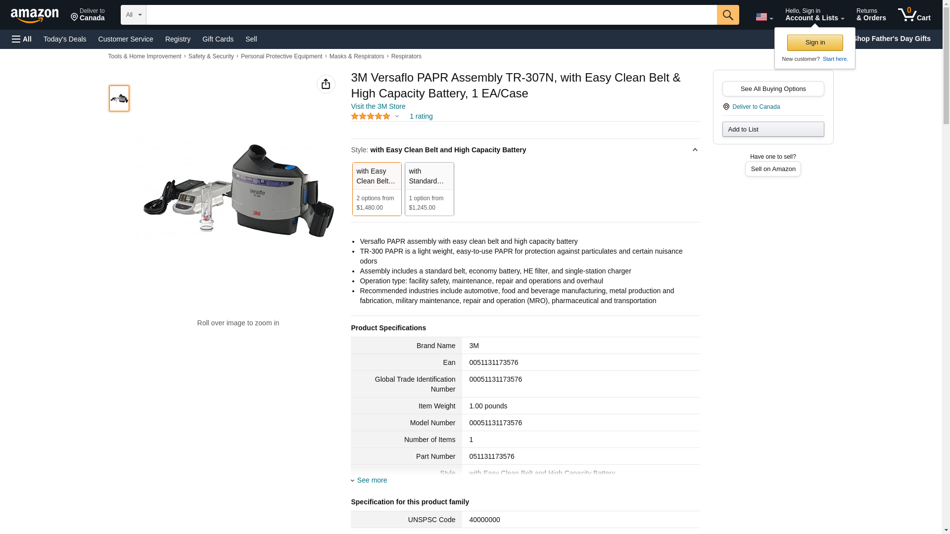 3M Versaflo PAPR Assembly TR-307N, with Easy Clean Belt & High Capacity Battery, 1 EA/Case