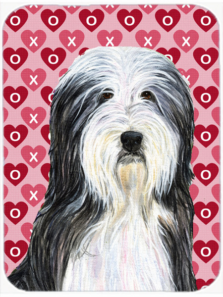 Caroline's Treasures SS4497LCB Bearded Collie Hearts Love and Valentine's Day Portrait Glass Cutting Board Large Decorative Tempered Glass Kitchen Cutting and Serving Board Large Size Chopping Board