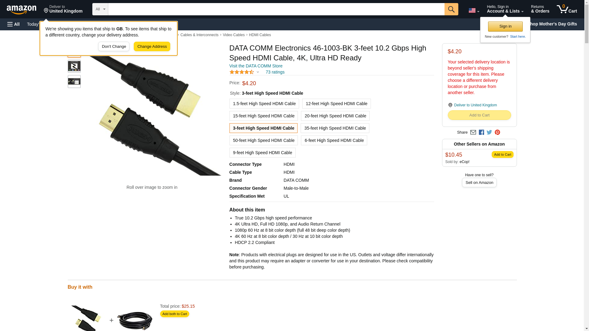 DataComm Electronics 46-1003-BK 3-feet 10.2 Gbps High Speed HDMI Cable, 4K, Ultra HD Ready
