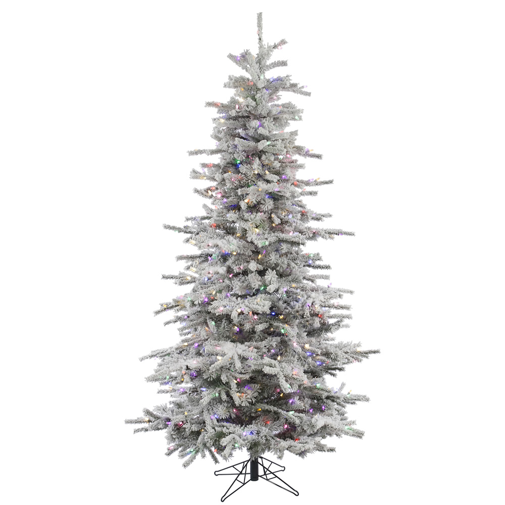 Vickerman A862047LED 4.5 ft. x 38 in. Flocked Sierra Fir Slim Artificial Christmas Tree with 250 Multi-Colored LED Light