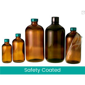 Safety Coated Bottle, 16 oz, 480 mL, Narrow Mouth, Boston Round, Sampling, Labware Basic Material Glass, Labware Body Material Safety Coated Glass, Includes Closure No, 28-400 mm, Non-Sterile, Pre-Cleaned None, Colored, Labware Closure Liner Material Unlined, Autoclavable Yes, Package Quantity 12