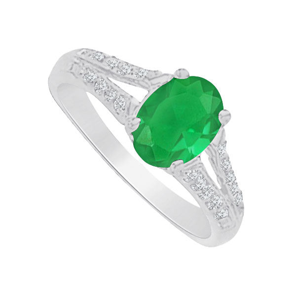 Fine Jewelry Vault UBUNR83136W149X7CZE CZ & Oval Emerald Split Shank Ring in 14K White Gold, 4 Stones