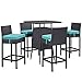 Convene Collection EEI-1963-EXP-TRQ-SET 5 PC Outdoor Patio Pub Set with 4 Bar Stools, Square Glass Top Table, Powder Coated Aluminum Frame and Synthetic Rattan Weave Materials in Espresso and Turquoise Color
