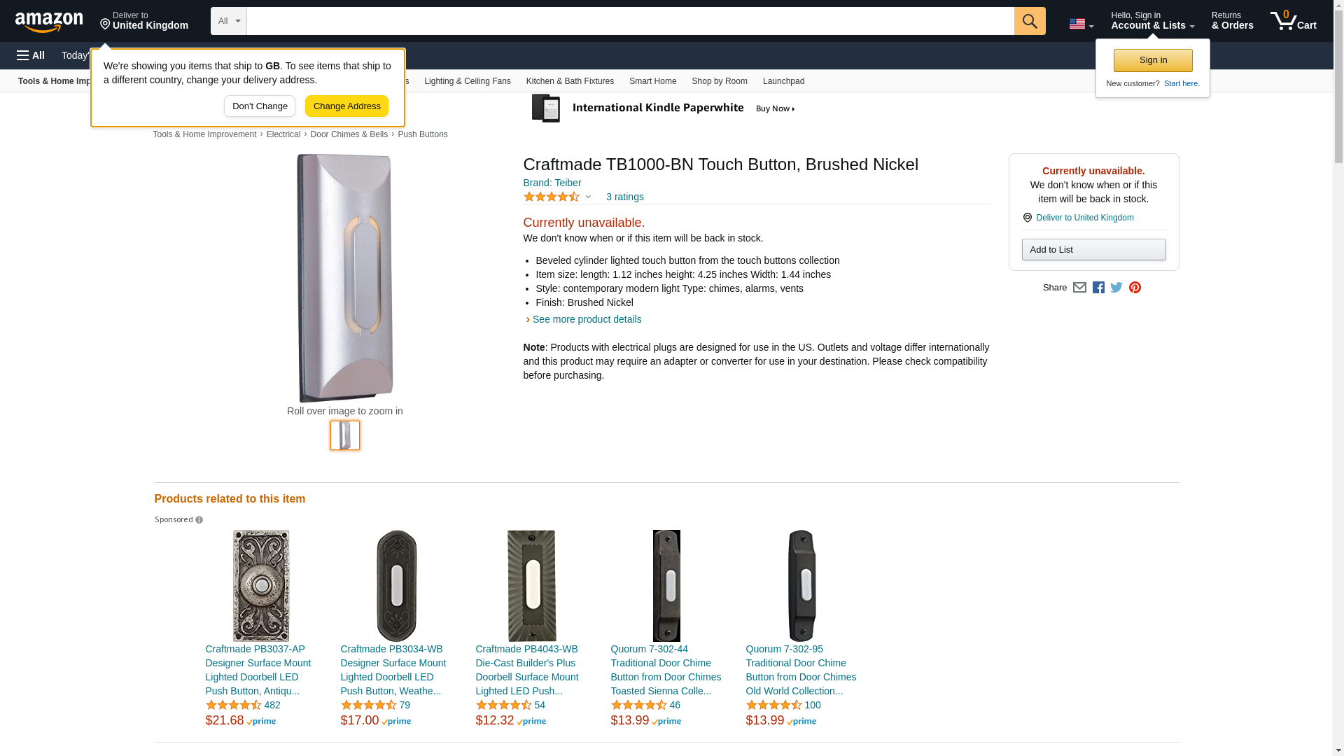 | TB1000-BN | 1 | Craftmade Orders usually Ship Next Day | 1 | 1 @ $55.00 |