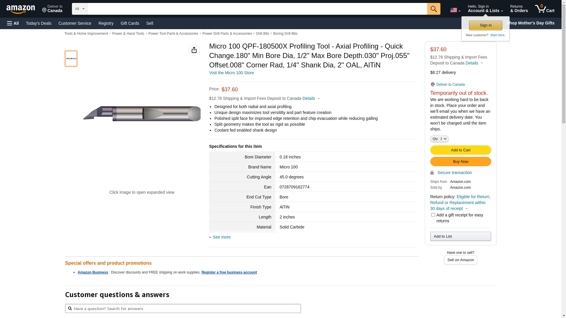 Micro 100 QC Boring Tool,Bore Dia. .180 ,D .500 QPF-180500X ZO-G8065696 - SIM Supply