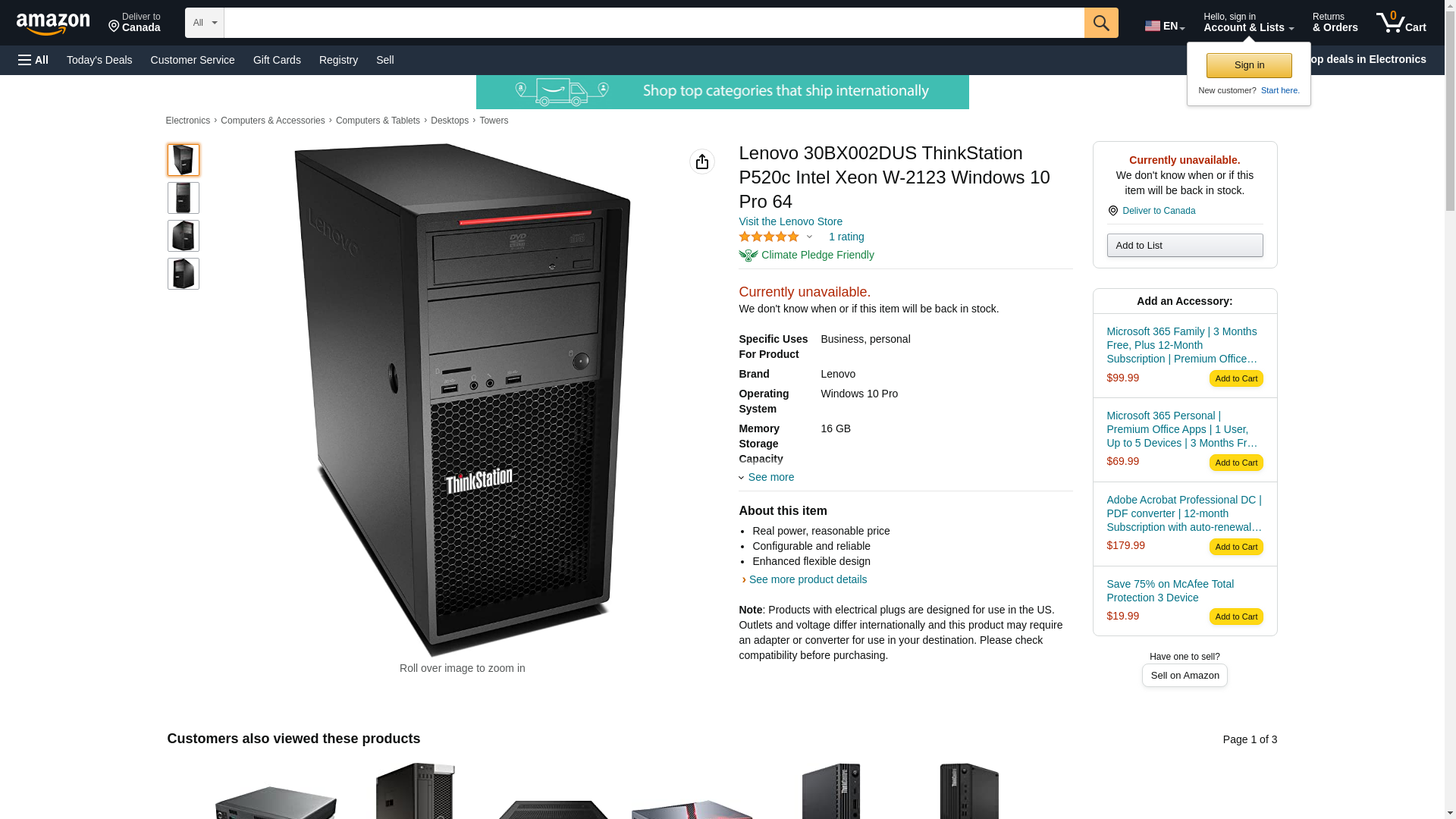 Lenovo 30BX002DUS ThinkStation P520c Intel Xeon W-2123 Windows 10 Pro 64