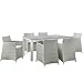 Modway Junction Wicker Rattan 7-Piece Outdoor Patio Dining Set with 63" Dining Table and Six Dining Armchairs with Cushions in Gray White