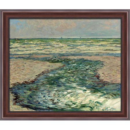 The Seacoast of Pourville, Low Tide 34x28 Large Walnut Ornate Wood Framed Canvas Art by Claude Monet