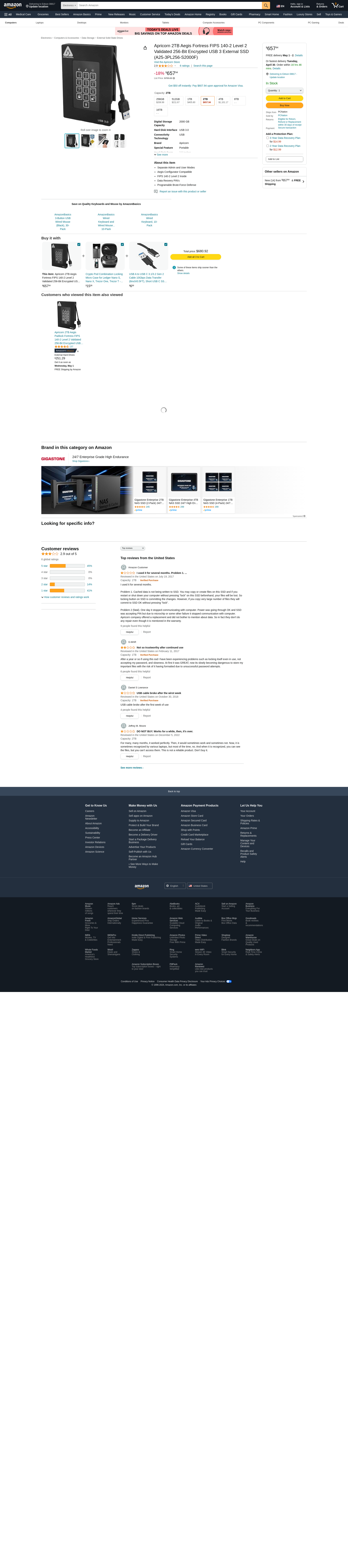 Apricorn 2TB Aegis Fortress FIPS 140-2 Level 2 Validated 256-Bit Encrypted USB 3 External SSD (A25-3PL256-S2000F)