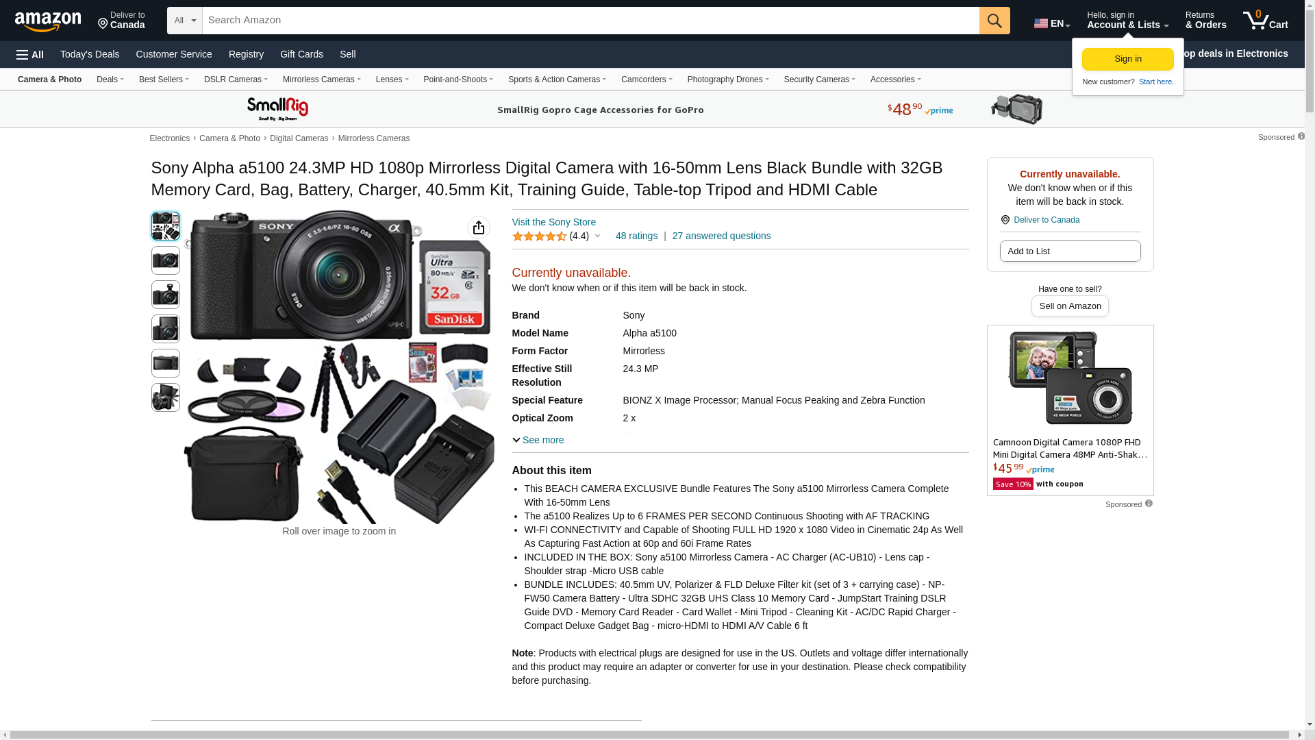 Sony Alpha a5100 24.3MP HD 1080p Mirrorless Digital Camera with 16-50mm Lens