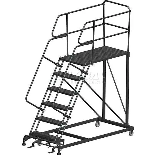 6 Step Heavy Duty Steel Mobile Work Platform W/ Handrails - 36" x 36" Platform - SEP6-36-36PD