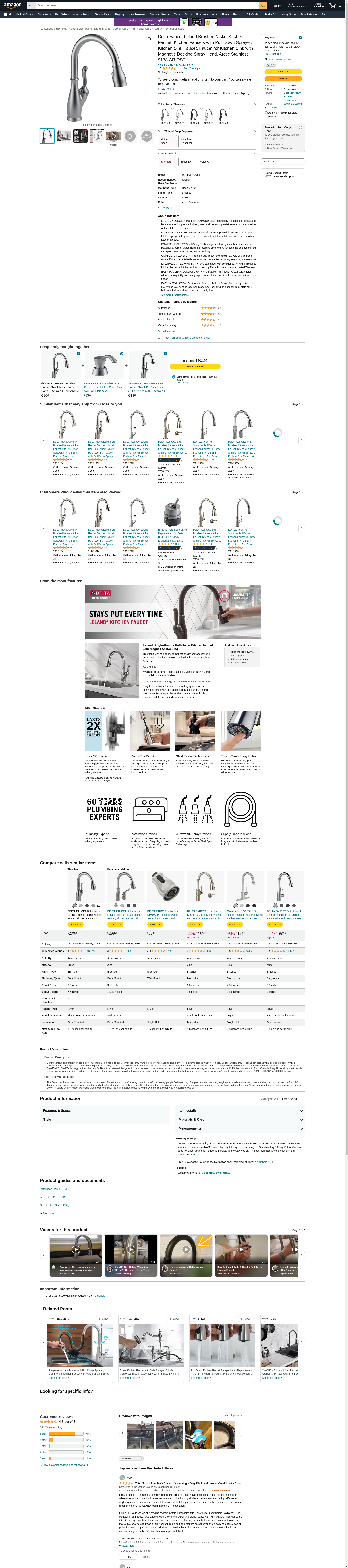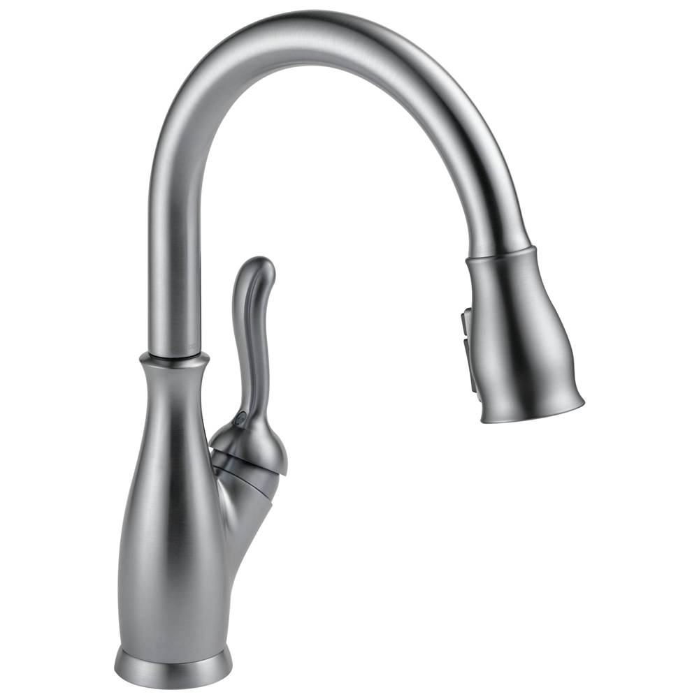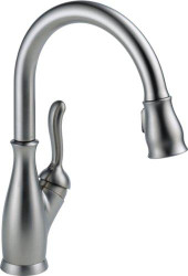 Delta Faucet Company 9178ARDST Leland Single Handle PullDown Kitchen Faucet, Arctic Stainless. Delta Leland Single Handle PullDown Kitchen Faucet features minimalist styling and sleek lines which represents the urban space. A delicate beauty of graceful curves adds a romantic touch to the bath.