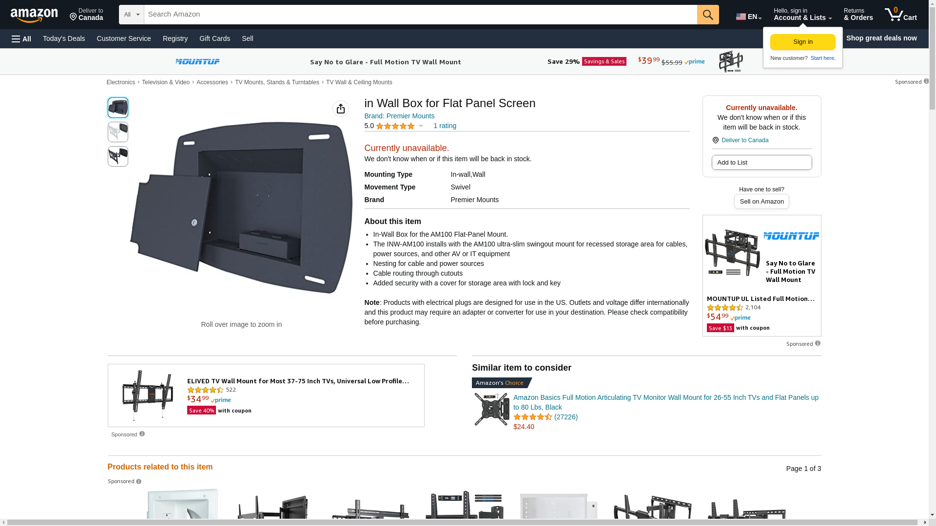 - In-Wall Box for the AM100 Flat-Panel Mount.