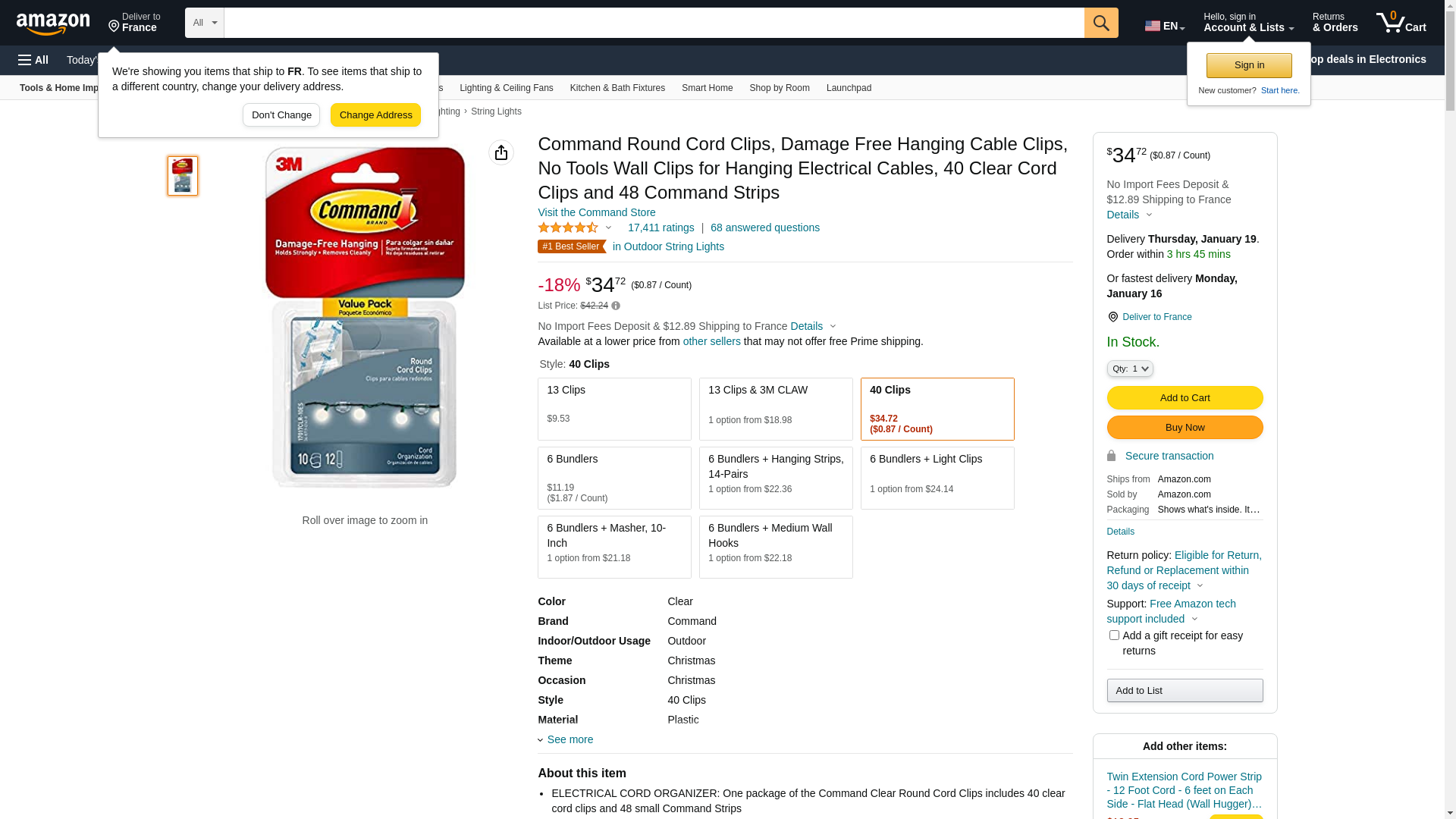 - ELECTRICAL CORD ORGANIZER: One package of the Command Clear Round Cord Clips includes 40 clear cord clips and 48 small Command Strips