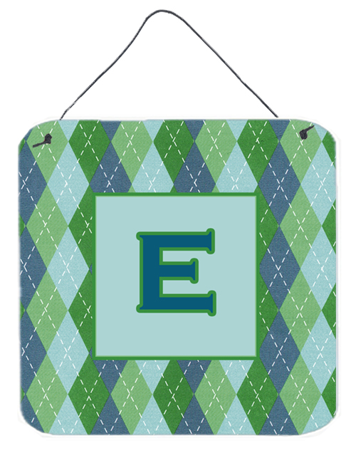 Caroline's Treasures CJ1020-EDS66 Letter E Initial Monogram - Blue Argoyle Wall or Door Hanging Prints Aluminum Metal Sign Kitchen Wall Bar Bathroom Plaque Home Decor, 6x6, Multicolor
