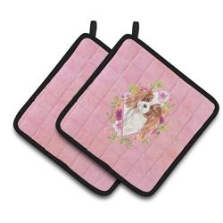 Carolines Treasures CK4248PTHD 7.5 x 7.5 in. Blenheim Cavalier Spaniel Pink Flowers Pair of Pot Holders