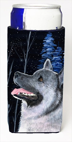 Caroline's Treasures SS8398MUK Starry Night Norwegian Elkhound Ultra Hugger for slim cans Can Cooler Sleeve Hugger Machine Washable Drink Sleeve Hugger Collapsible Insulator Beverage Insulated Holder