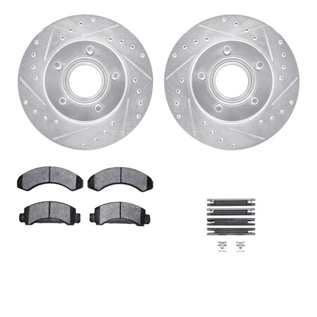 Dynamic Friction Company Front Brake Rotors Drilled and Slotted Silver with Ultimate Duty Performance Brake Pads includes Hardware - 7412-54020