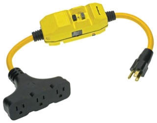 Woodhead 15050-3TT Safeway GFCI Molded Plug and Tri-Tap Connector, Commercial Duty, NEMA 5-15 Configuration, 12/3 SJTW Cord Type, 3 Receptacles, 15A Current, 120V Voltage, 2ft Cord Length